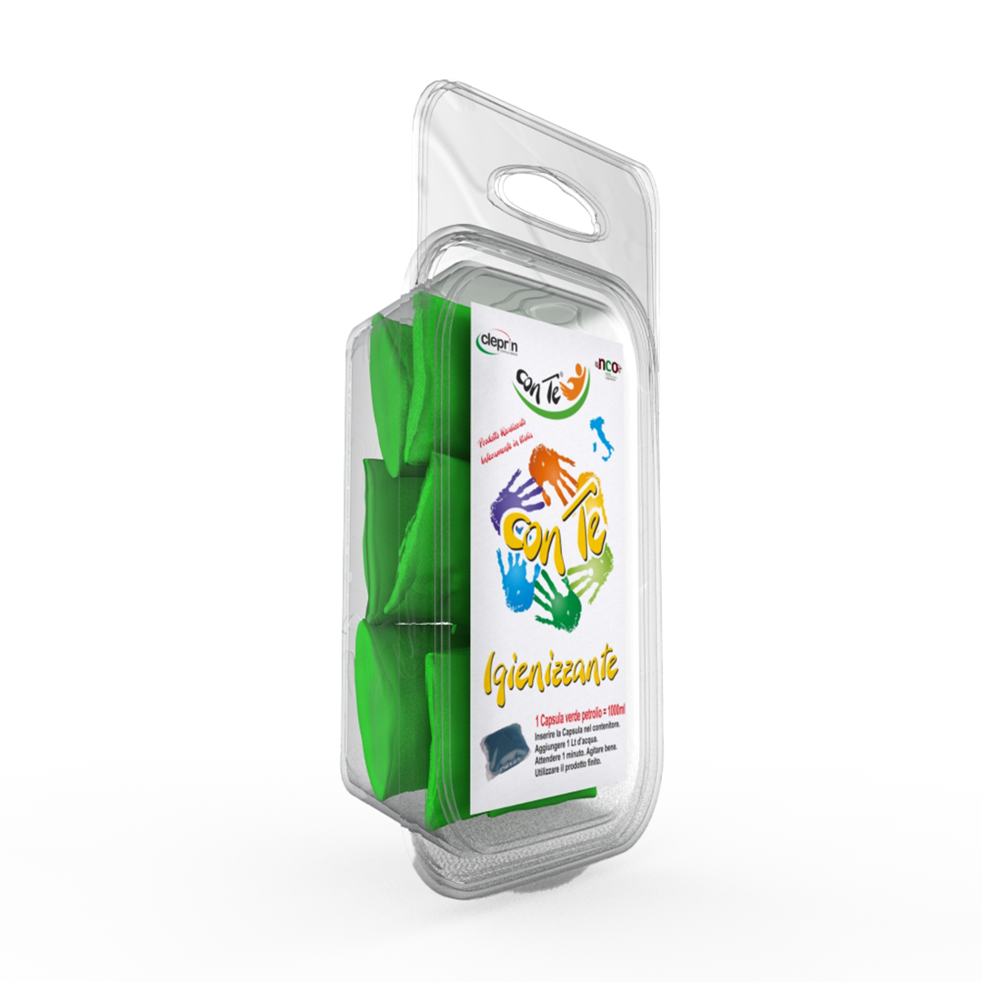 Detergente igienizzante SUPERCONCENTRATO in capsule idrosolubili particolarmente indicato per la rapida IGIENIZZAZIONE di tutte le superfici lavabili.