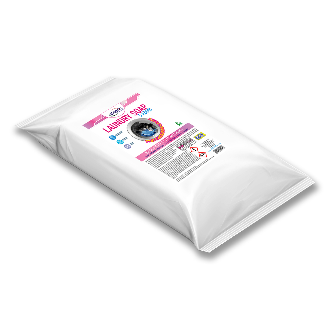 Laundry Soap detergente multiazione racchiude in un unico panno 5 funzioni: lavabiancheria, ammorbidente, igienizzante, salvacolore, panno spolvero. Il prodotto impregnato su speciale panno spunlace è adatto ad ogni tipo di sporco, ridona il biancon aturale al bucato ed è adatto per capi colorati.