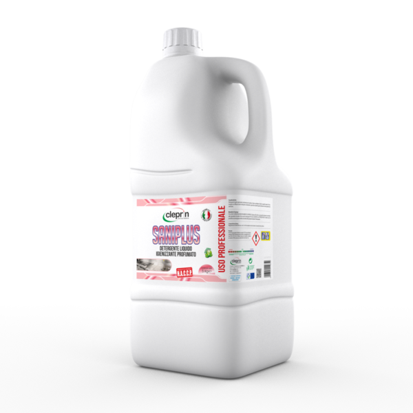 Detergente liquido igienizzante profumato per la pulizia e l’igiene quotidiana di tutte le superfici lavabili. Oltre a svolge re un’efficace azione detergente e deodorante, igienizza le superfici grazie all’azione dei sali quaternari di ammonio.