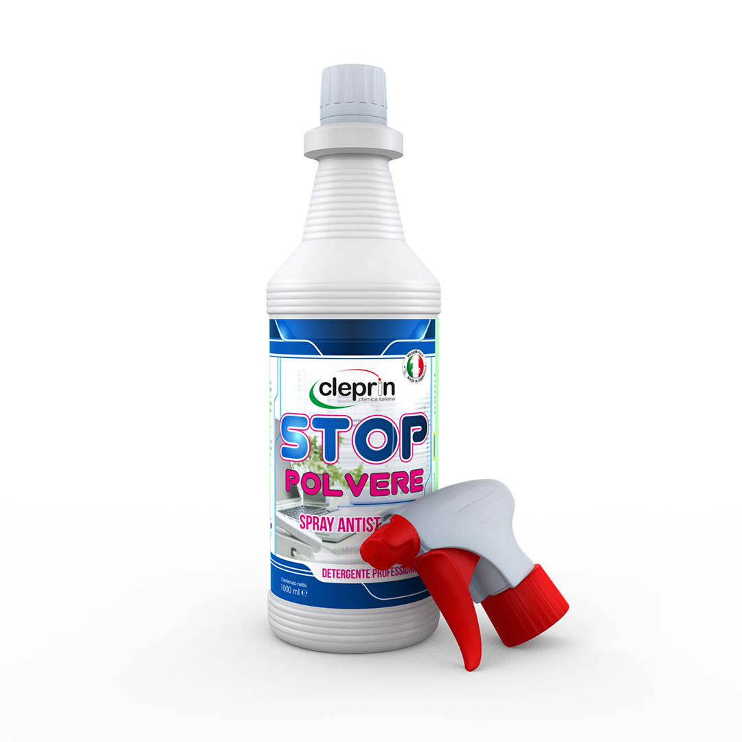 Pulitore antistatico spray. Spruzzato su panno polvere, scopa a frange o mop consente di asportare facilmente la polvere dalle superfici evitandone la dispersione nell’ambiente e, contemporaneamente, di eliminare le cariche elettrostatiche dalle superfici impedendo il ridepositarsi della polvere su queste. Evapora rapidamente.