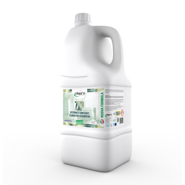 ZIP è un detergente liquido, cloroattivo, schiumogeno, poliedrico particolarmente indicato per l’applicazione nell’industria alimentare. Utilissimo nel settore lattiero-caseario, enologico, nelle industrie: conserviera, ittica, di lavorazione carni (compresi mattatoi) o vegetali e produzione bibite. Rimuove grasso animale e vegetale, sangue e sporco proteico su superfici contaminate. La sua formulazione concentrata con l’elevata presenza di cloro consente l’eliminazione di macchie dovute ai residui organici e vegetali. Può essere utilizzato per la pulizia di pavimenti, pareti, piani di lavoro e attrezzature. Va applicato mediante apparecchiature schiumogene. Senza colore e senza profumo è ideale nel settore alimentare per l’attuazione dei piani di autocontrollo HACCP.