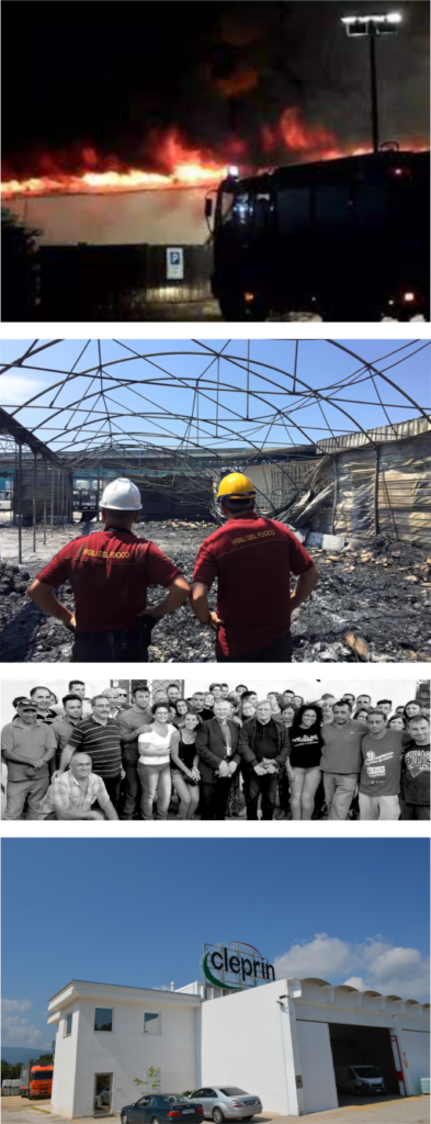 Il 24 luglio 2015, dopo aver partecipato al Festival dell’Impegno Civile insieme al Dott. Cantone, Cleprin subì un incendio doloso che distrusse due terzi dello stabilimento.